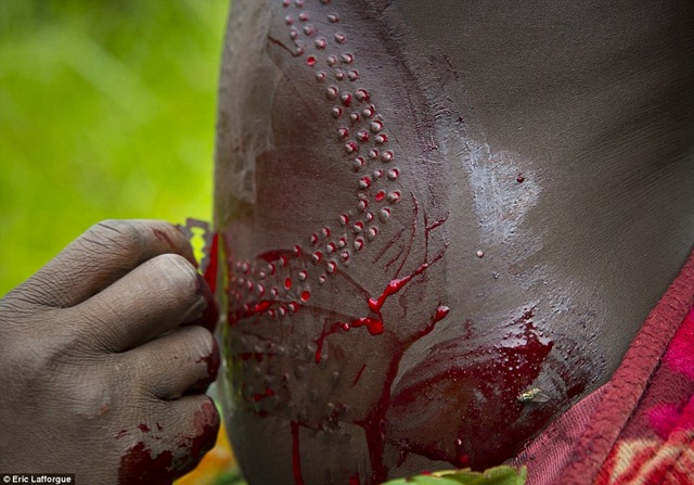 ‘At the end, I asked her whether having her skin cut had been tough and she replied that she was close to collapse. It was incredible as she didn’t show any sign of pain on her face during the ceremony as that would have been seen as shameful for the family.’