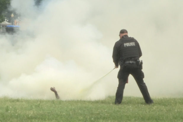 Video shot by Berzins and posted to Twitter by her father shows the man, clad in black pants, covered head to toe in flames as he takes a slow walk across the grass near 15th Street NW and Constitution Avenue NW.