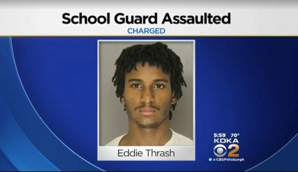 According to Penn Hills Police, the guard approached Thrash around 1:30 p.m., told him to get out of the hallway and go to class. First, police say there was a verbal argument, but then things got physical.