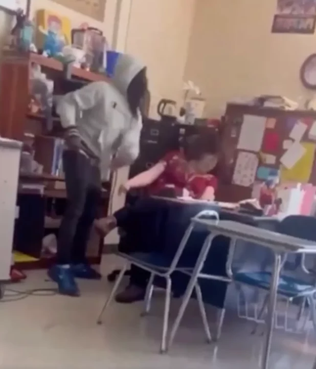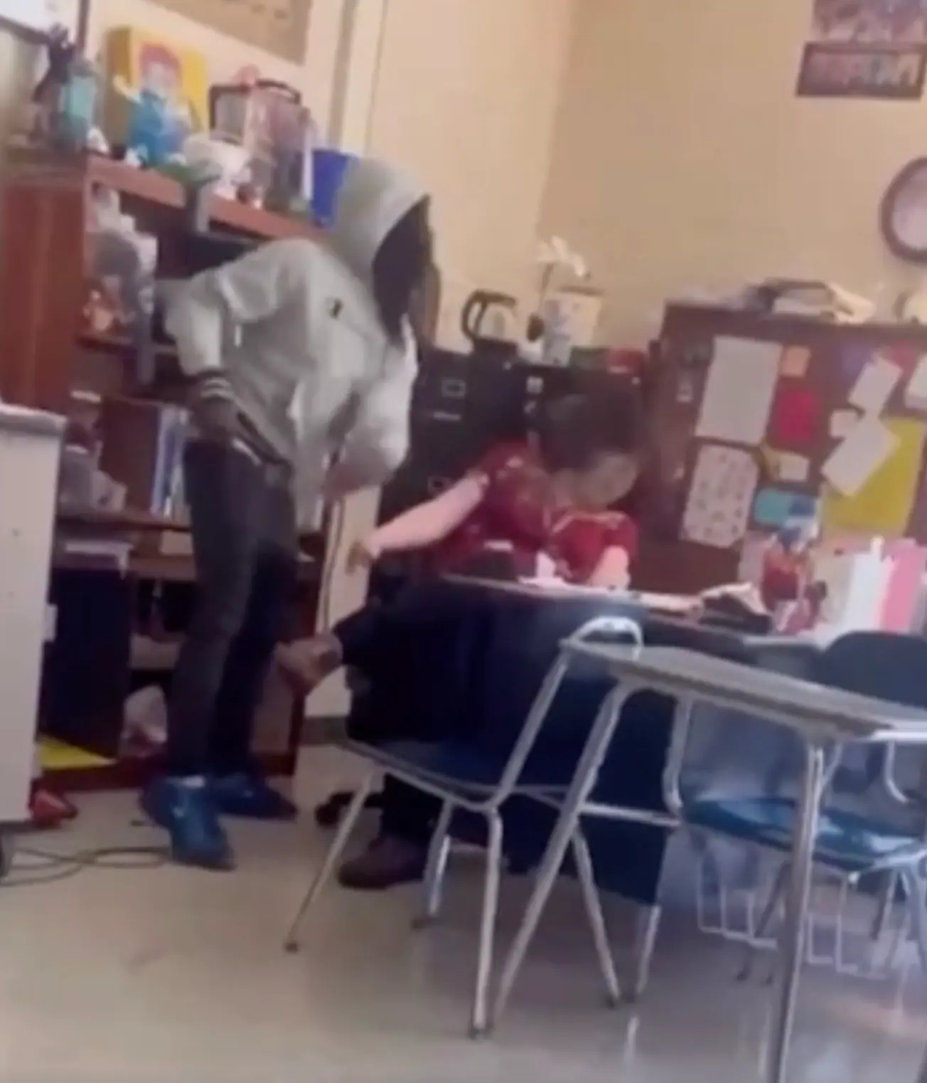 “I walked up to the desk to get my phone to call the office and he mockingly walked behind me, and I happened to turn around and see him and the students started laughing,” Edwards said in a report last week. “The next thing I know he had taken his hand and smushed my head and everybody started laughing and he ran out.”