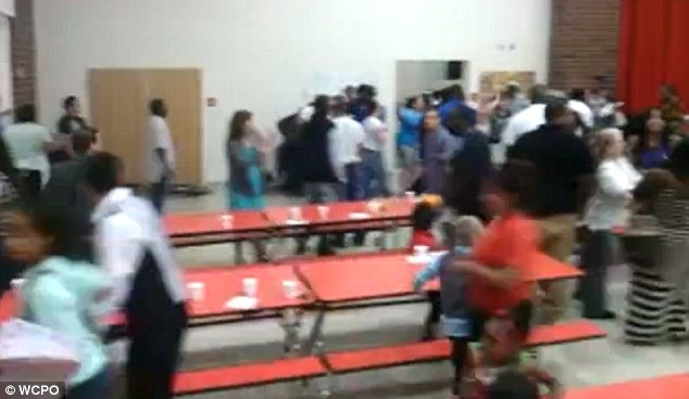 The dispute sparked a brawl involving up to 20 others after the 150 kindergartners graduated and were snacking on punch and cookies in the school cafeteria.