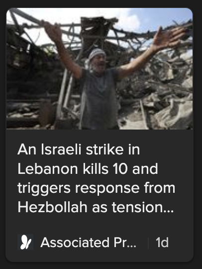 That will be after the open war with Hezbollah in southern Lebanon, which is about to kick off pretty soon here. Israel bombed them again on my day off.