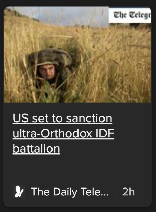 But they’re not sanctioning the IDF. And just imagine the logistics of this: they are saying they’re going to sanction one battalion of a military and thereby block US weapons from going to that battalion. How do they do that? The battalion is a part of the IDF, which is the one giving them the weapons. If the US tells the IDF not to give them anymore weapons, do you think Bibi Netanyahu is going to abide by that?