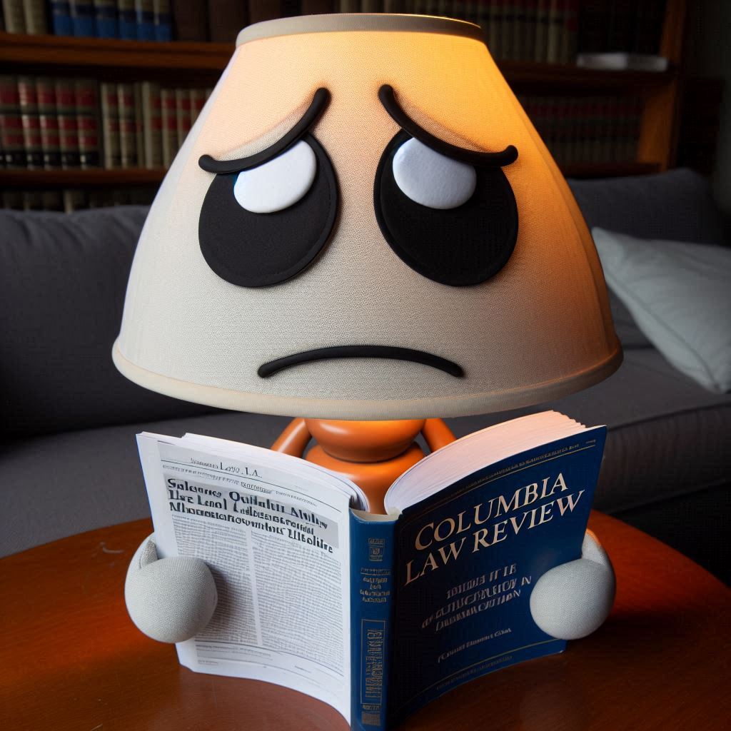 Just imagine: it’s 1943 and you’re in a concentration camp. Your number comes up and you’re called into Josef Mengele’s office. He turns you into a lampshade. Fast forward to 2024. Your copy of Columbia Law Review arrives in the mail, but you can’t read it until someone comes and changes your bulb. Finally, one of your maids comes to change your bulb so you can read the review, and you find someone wrote something that hurt your feelings.