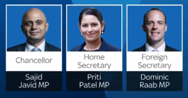 Chancellor of the Exchequer – Sajid Javid, ostentatiously Judeophilic Moslem who recently called for a special inquiry into “Islamophobia” in the Conservative Party.