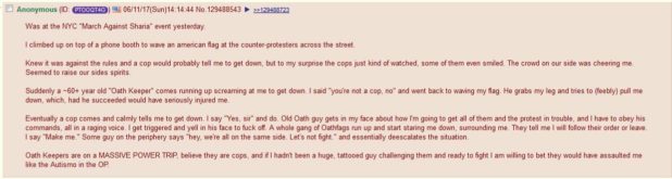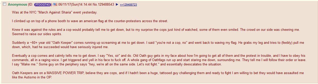 The Boomer Antifa, which call themselves “Oath Keepers” showed up, and had an illegal immigrant attack one of our guys.