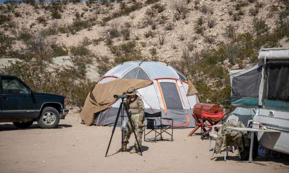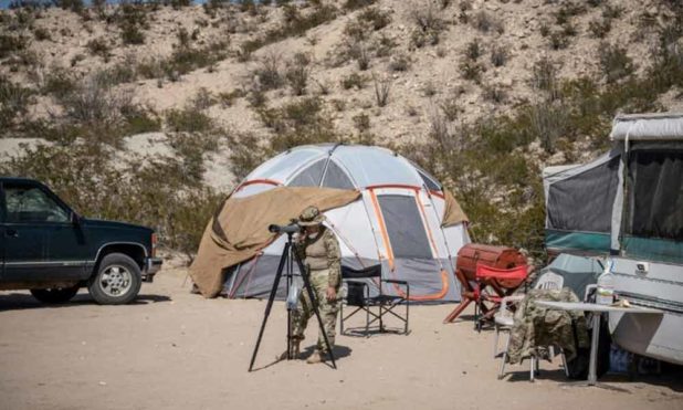 In the southeasternmost pocket of the US state of New Mexico, with El Paso, Texas, to the east and Mexico a stone’s throw south, there is a small camp: a few tents and a weathered trailer.