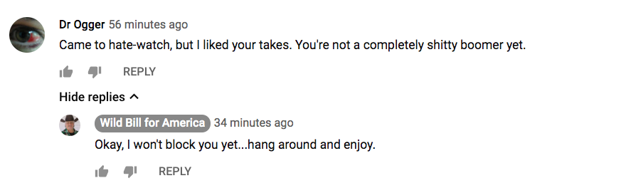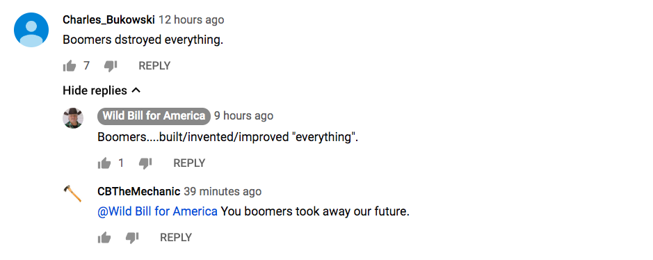 There’s just this… way that Boomers interact with younger people with differing opinions that triggers such a visceral rage in Millennials that there’s no stopping what’s coming next. It’s condescending and self-righteous and it comes from a feeling of misplaced smug superiority that these people have.