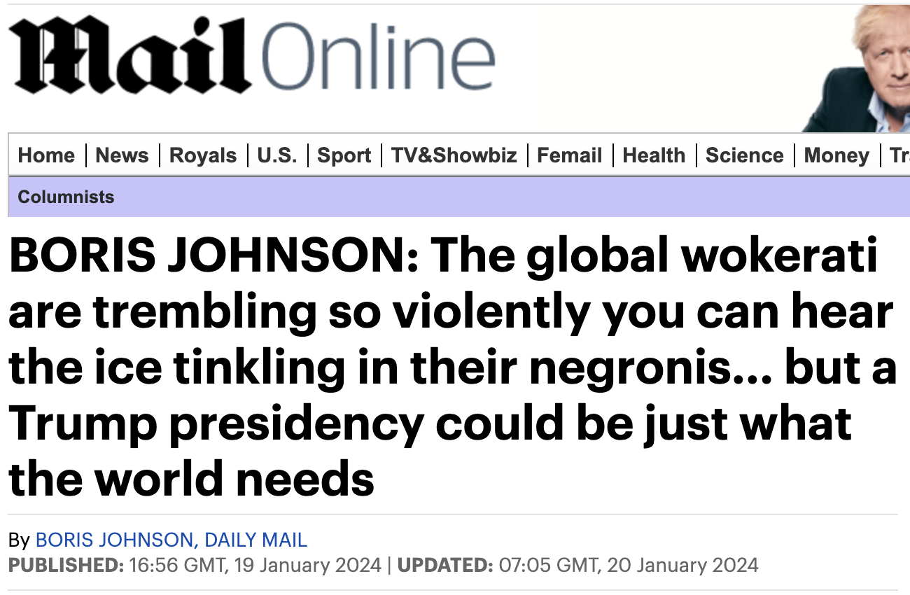 Boris Johnson is the number one global emissary of the Biden wars. I have no idea what he bases his claim that Trump will support the Ukraine on, but what this appears to be is an olive branch being offered to Trump – right in the middle of the WEF meeting – that if Trump supports these wars, he has a chance.