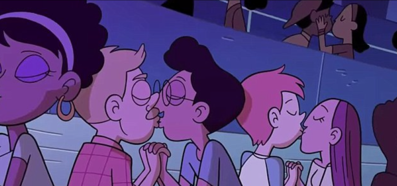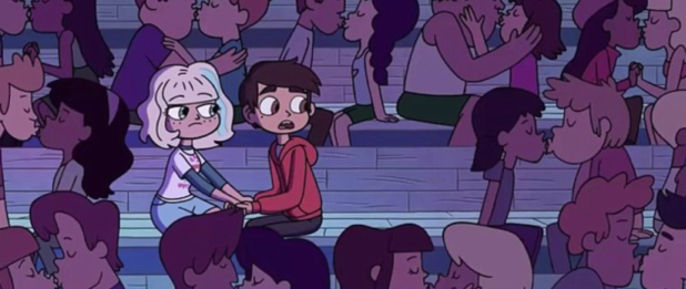 In the second series of the cartoon, protagonist Star and her friend Marco attend a concert and find themselves surrounded by kissing couples.