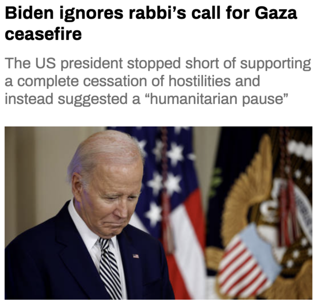 The headline is sort of confusing. Calling for a “pause” is definitely different than calling for a “ceasefire.” Regardless, the main story is that he did call for a “pause.” Denying a heckler’s demand is not a major event.