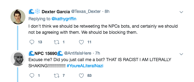 They don’t try to engage them. They don’t try to debate them. They just ignore and hope that the Twitter mods will censor the NPC posters.