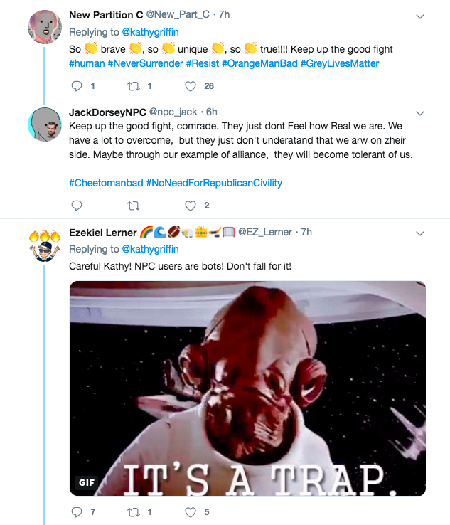 Amazingly, the liberals on Twitter try to dance around the NPC “bots.”