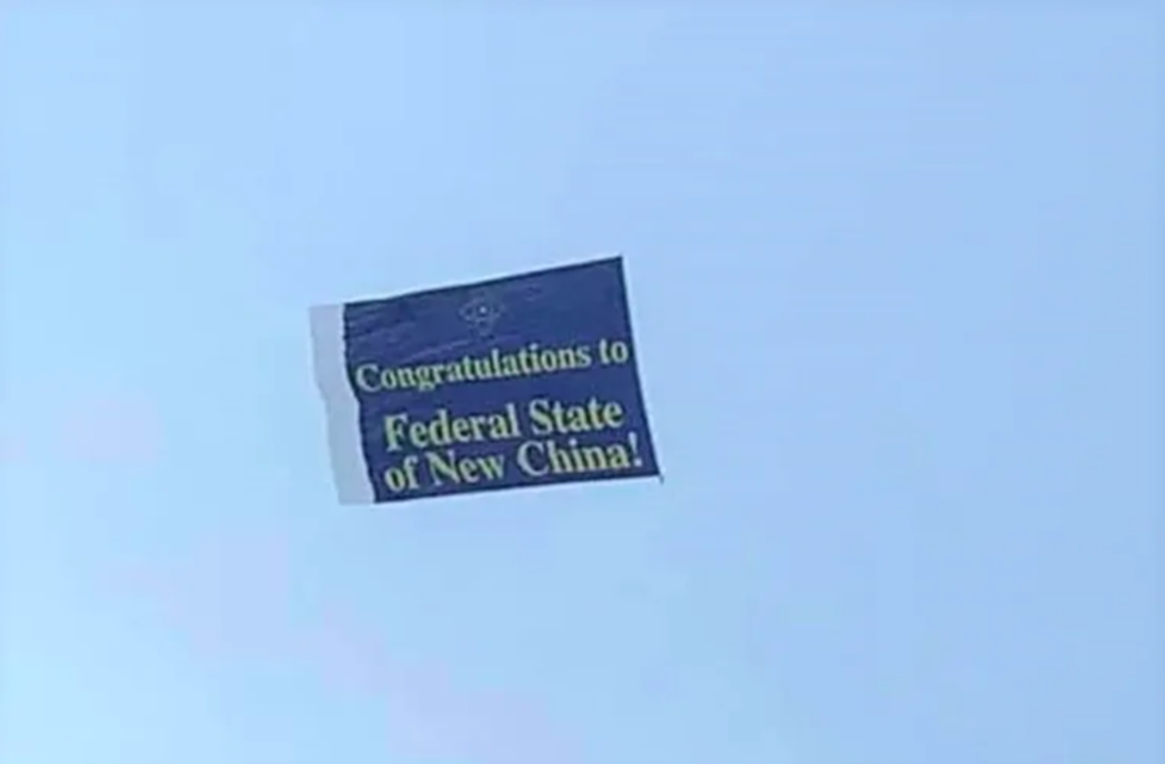 They have their own new flag for China and they flew planes around the Statue of Liberty that had banners reading “Congratulations to Federal State of New China.”