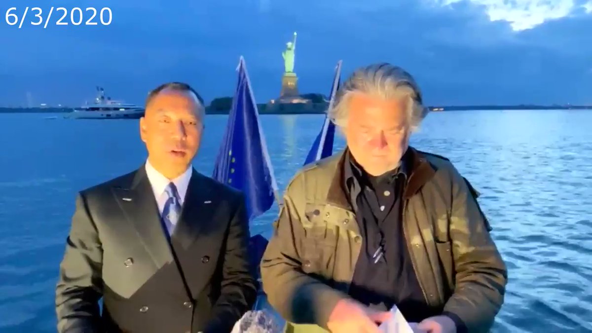 Guo Wengui fled China in 2014 after “having a falling out” with the CCP, and was charged with corruption, bribery and money laundering, etc. Despite being a member of the communist party for his entire life, he now wants to do democracy, which is why he was on this boat with Steve Bannon in the harbor in front of the statue of liberty.