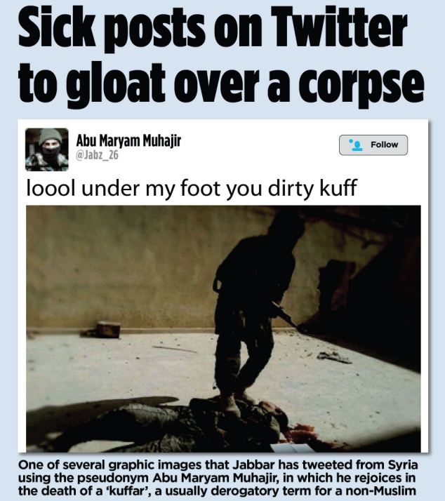 To the horror of his parents – who are begging him to return to Britain – Jabbar has said that he wants to die in Syria as a ‘shaheed’ [martyr], while attempting to create an Islamic state with strict sharia law.