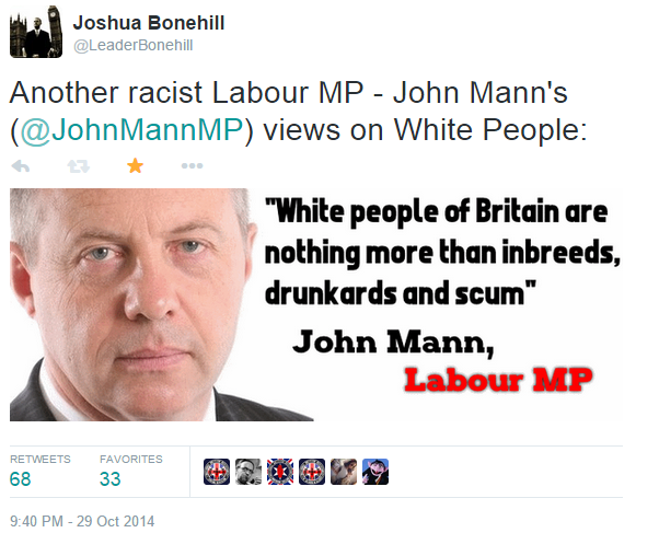 His Tweet was – and this will sound familiar – non-violent and merely questioned Mann’s support for the filthy Jewess Berger, as well as his anti-White plot against the British people and nation.