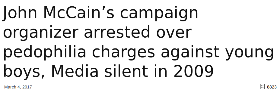 Now people have unearthed yet another thread from back in 2009, and in the game of “Six Degrees Of Kevin Bacon,” we can reduce it to one degree of John McCain when speaking of disgusting perverts. I give you Jeffrey Claude Bartleson, a man who was not in the GOP to any extent, yet was a manager in John McCain’s 2008 campaign, and was arrested for sexually abusing 5-year-old children.