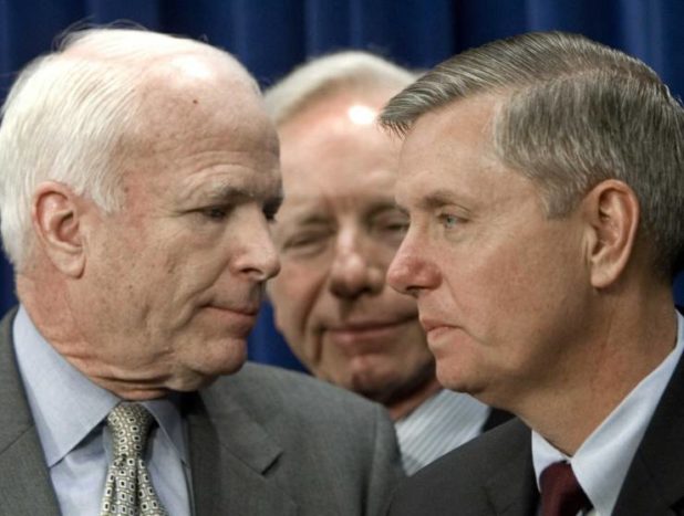 The bizarre, often self-contradicting and fiendish cucking by both McCain and Graham points to more than just getting bribed. One look at Graham and you know this twinkly-eyed weirdo is some kind of sexual deviant. In the case of his Octogenarian partner McCain, any normal corrupt Washington scumbag would’ve retired by now.