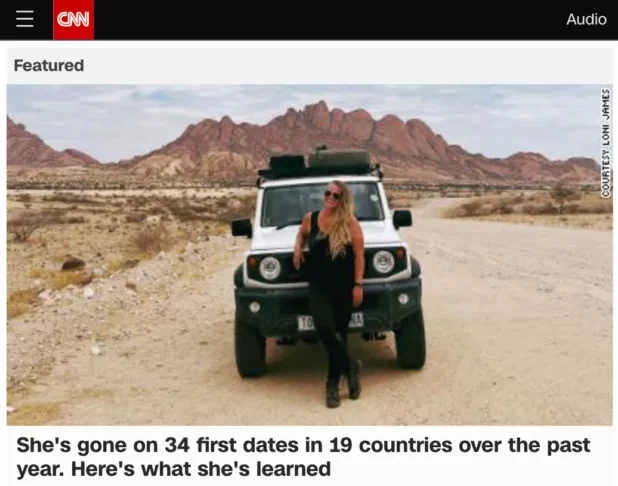 She never saw the man again. But so began her journey – one with no specific itinerary in mind. Over the past year, James says she’s used Tinder, Hinge and Bumble to go on 34 first dates in 19 countries, a series of romantic rituals full of intrigue, surprises and cultural firsts.