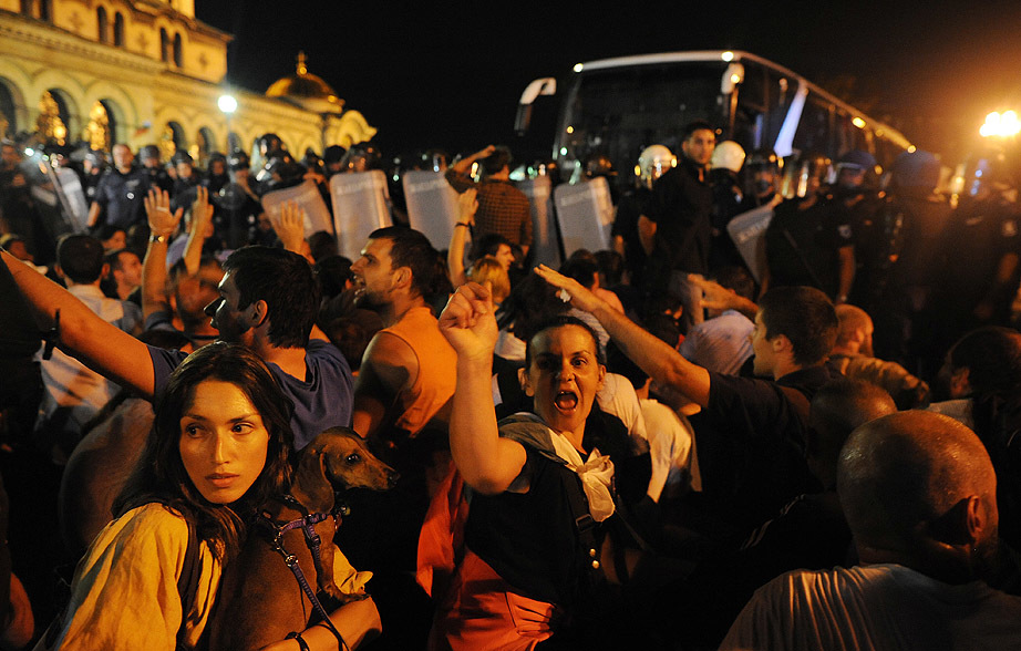 On Tuesday evening several hundred demonstrators in Bulgaria turned violent, with clashes with police and stone throwing.