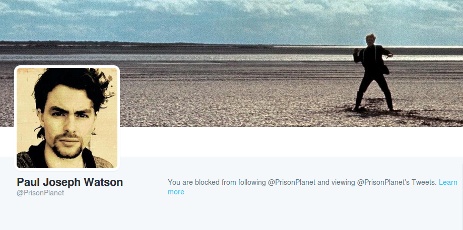 Feel free to tweet Watson (@PrisonPlanet) and let him know what you think. He is apparently mass-blocking. If you get blocked, post screenshots.