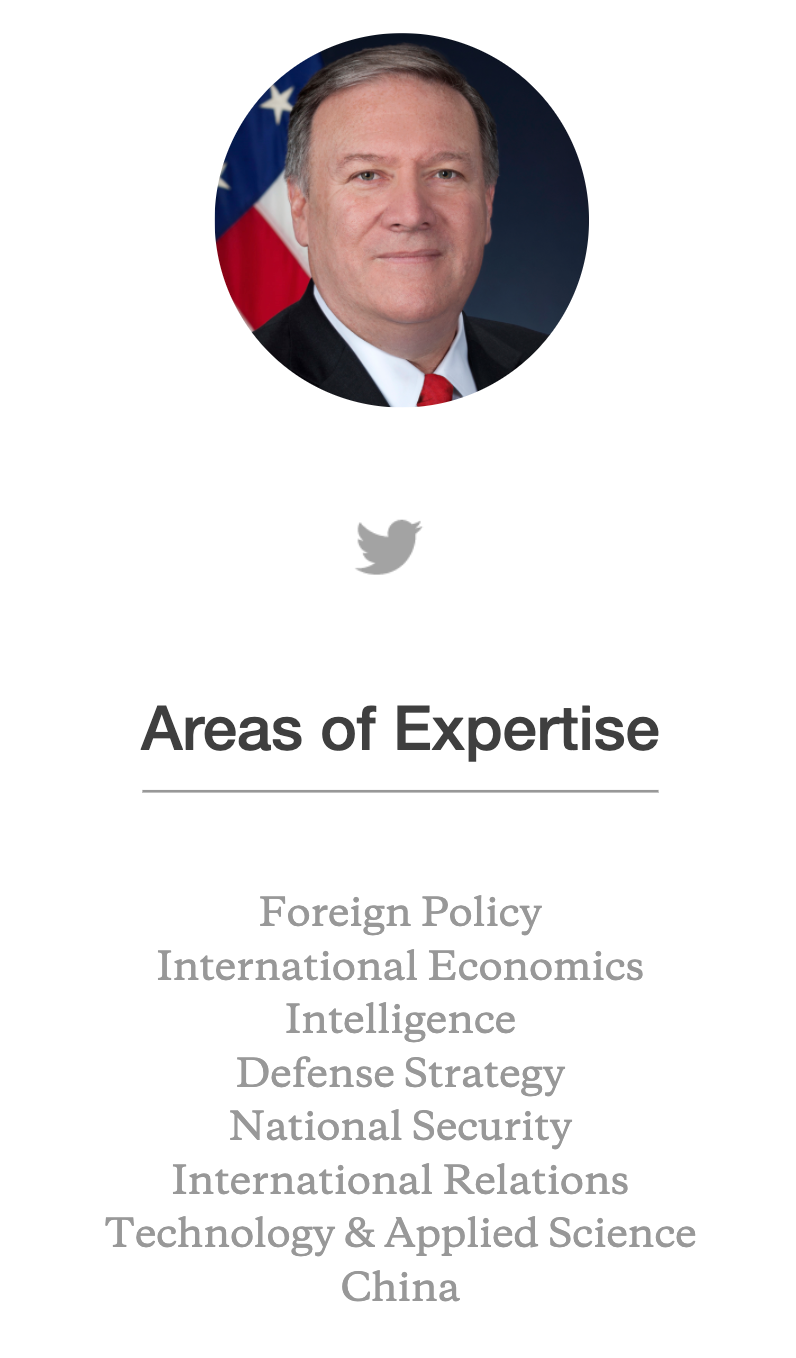 We should also note that Mike Pompeo took a very similar approach, and that he is still planning State Department strategy at the Hudson Institute, where he is billed as an expert on foreign policy and China.