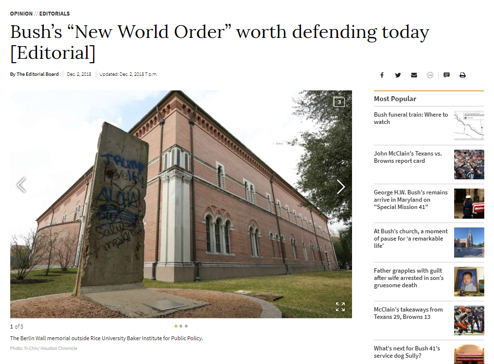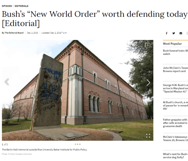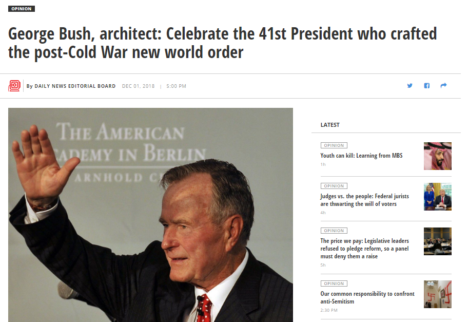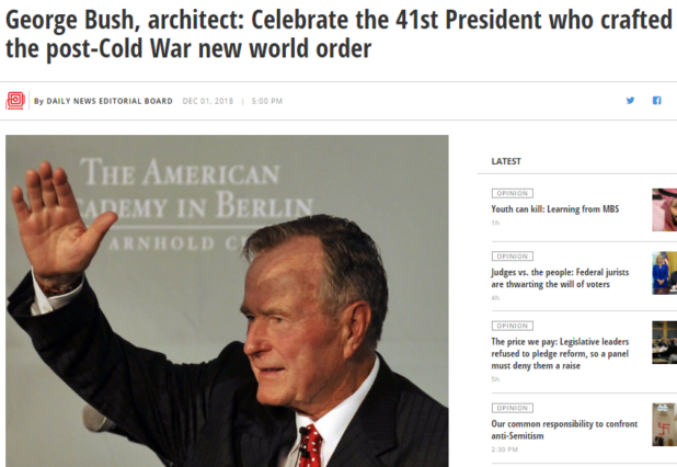 The NY Daily News and the Houston Chronicle are just two examples of this. The Houston Chronicle even described Bush 41’s “New World Order” as a great thing worth defending.