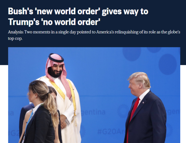 We are also seeing articles written describing how sad it is that Bush 41’s “New World Order” is being dismantled by President Donald J. Trump.