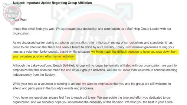 “The verbiage she said was you didn’t abide by their diversity, equity and inclusion, so they had to ask her to step down and she can’t be a part of the MS society as a volunteer.” Itkoff’s daughter Elle Hamilton said.