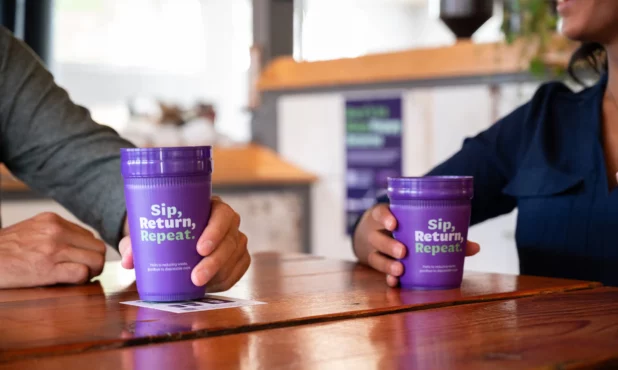 Holding a cup of coffee as we talk, I’m impressed that the espresso doesn’t burn my hand through the plastic wall. And while their purple hue is very purple, I appreciate that cups are immaculate – clearly more professionally sanitized than similar cups I’ve encountered in food courts and cafeterias. The shops aren’t having to clean the cups themselves – they’re washed by an outside logistics company – meaning there’s one less thing for businesses to factor in as they make the switch.