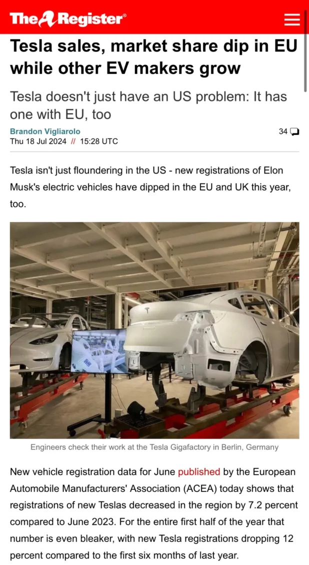 Anyway, that’s not what’s driving Tesla’s downfall in the US yet, because the US has blocked import of the very cheap Chinese options. In America, people just realized Tesla is grossly overpriced garbage. I suppose a fair amount of people in California are also upset that Elon has gotten involved in right-wing politics.