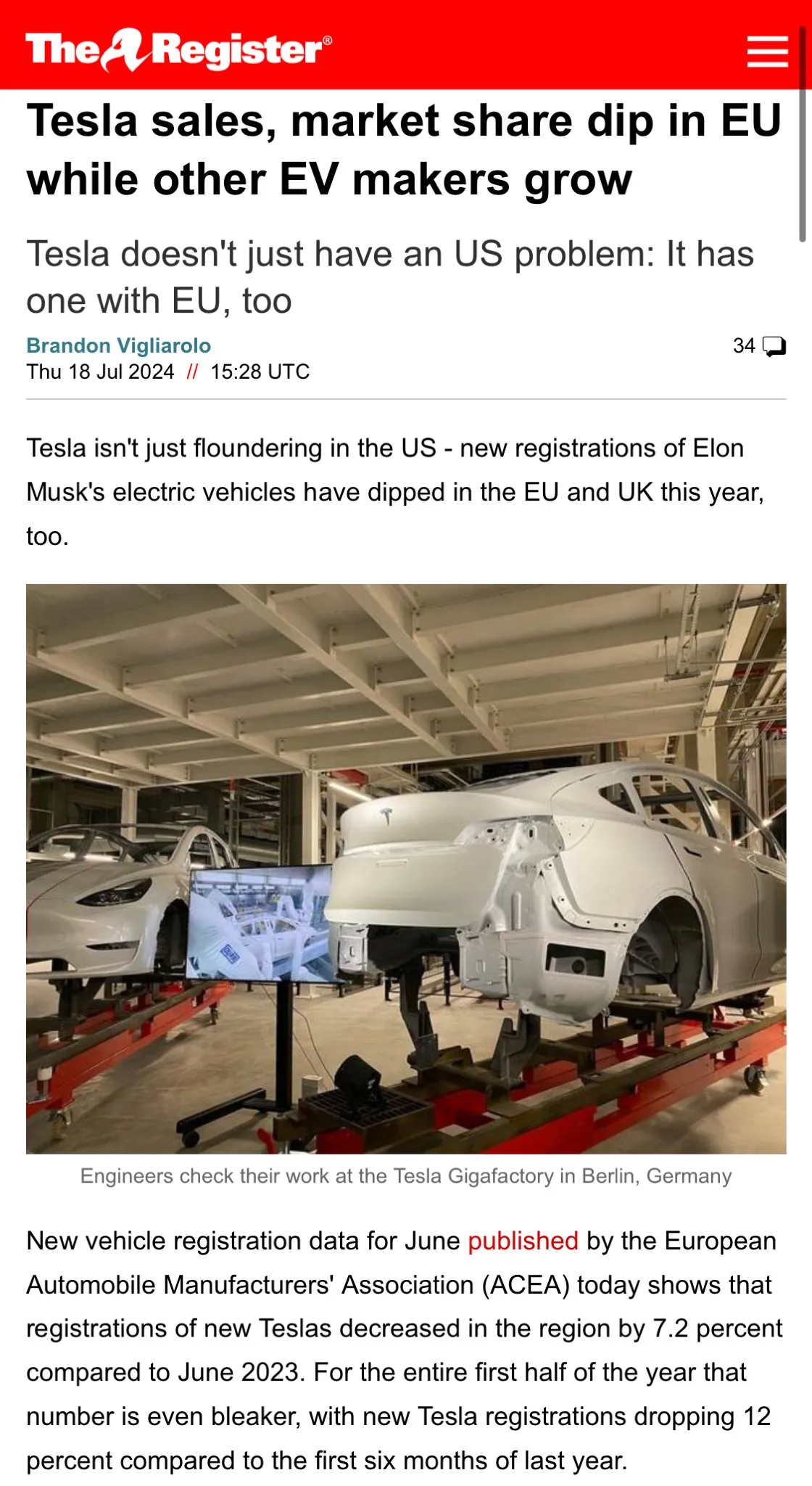 The EU is trying to stop the import of Chinese EVs too, though they’ve not gone as hard, and Tesla is having an even harder time there.