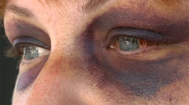 The woman, who now has two black eyes, said the attack began when one of the men in the group sucker punched her. Stockton police said she was treated at a local hospital for her injuries and released after the attack.