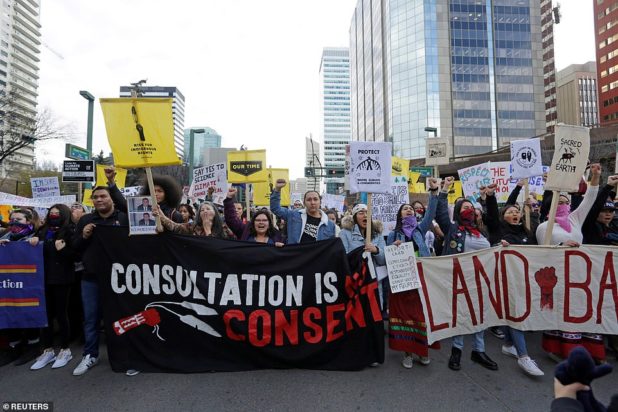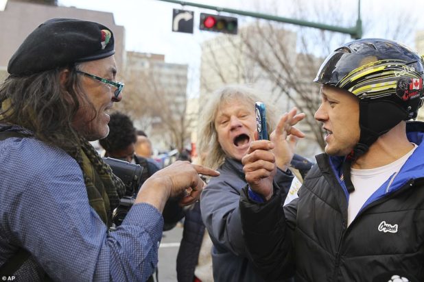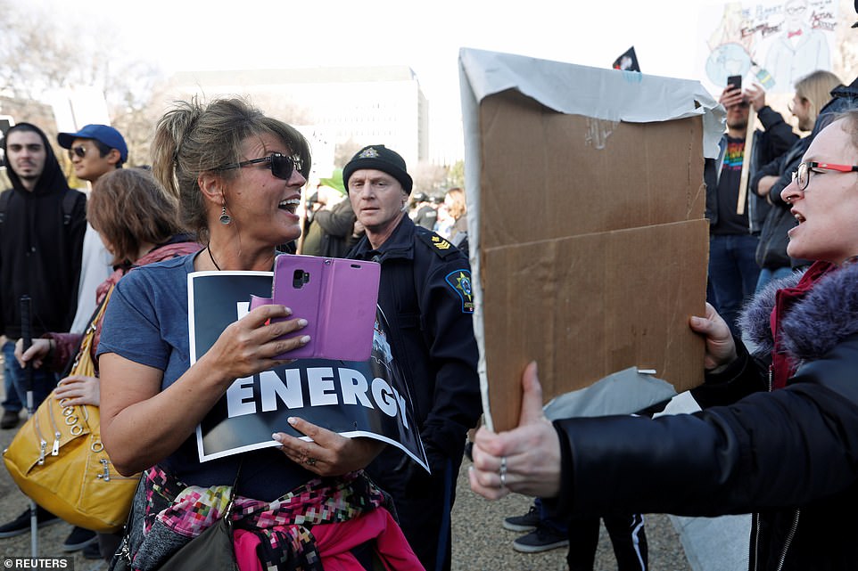 But a counter-protester said: ‘We care for the environment, of course we do. What they need to understand is that we’re hurting and we also need to care about Alberta jobs.’