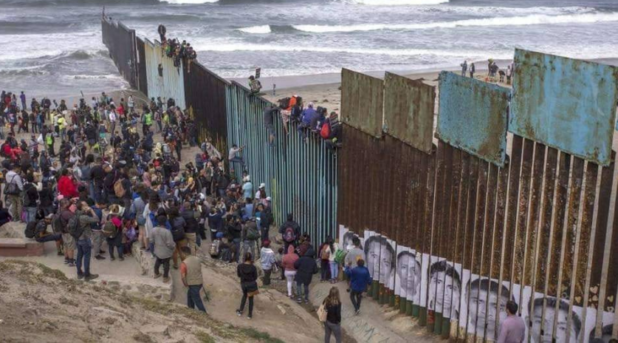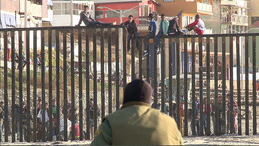 People on the Mexican side of the border could be seen climbing the fence near Friendship Park Tuesday afternoon after part of the Central American migrant caravan arrived in Tijuana.