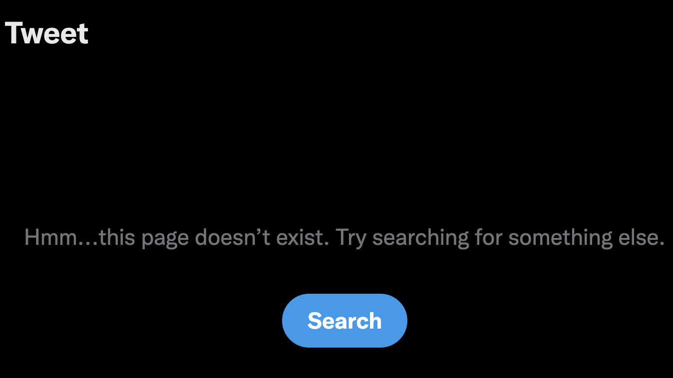 In an article earlier today, I was trying to embed it in the article and it wasn’t appearing. I clicked through and found that the tweet had been deleted by the author.