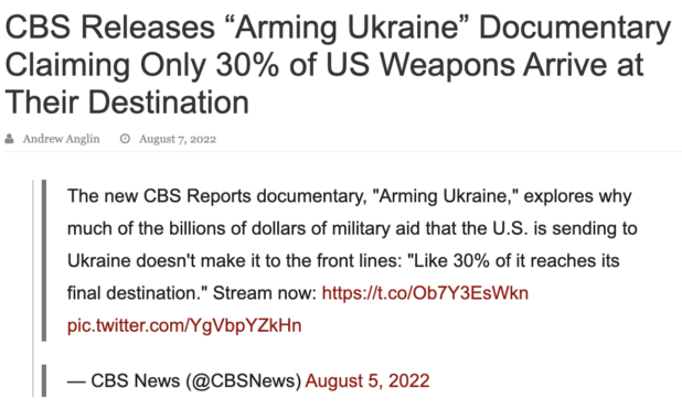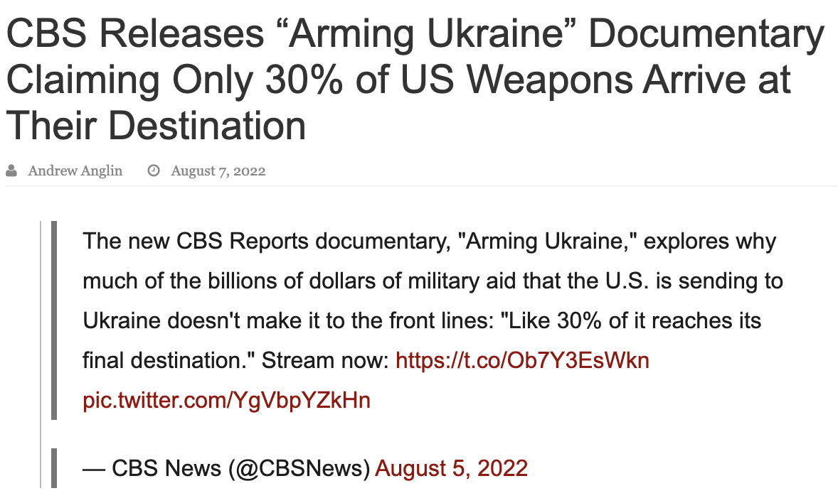 At some point in the last 24 hours, following the blow-up of CBS’s “Arming Ukraine,” the entire thing has been memory holed completely.