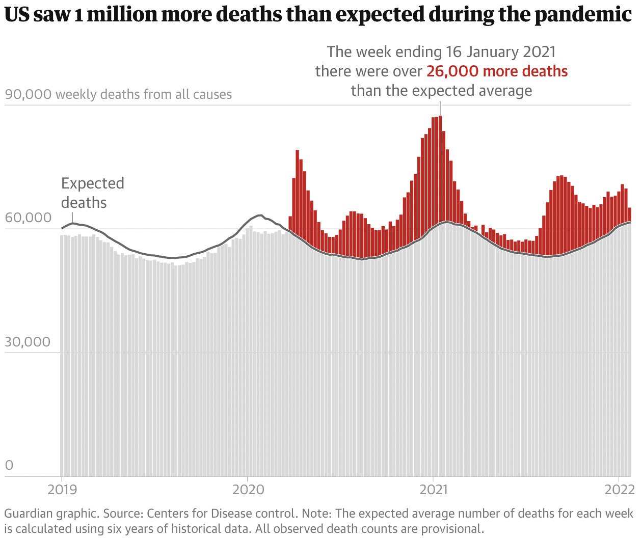 There have been more than 1m excess deaths in the US during the pandemic, according to the US Centers for Disease Control and Prevention (CDC).