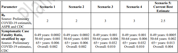 In their seven-page document “Coronavirus Pandemic Planning Scenarios,” uploaded a few days ago, they estimate an overall symptomatic case fatality ratio of 0.004.