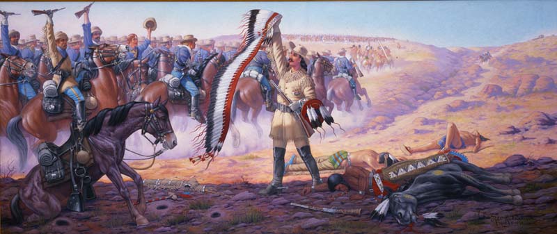 The Battle of Summit Springs was a real life example of the quintessential feat of frontier chivalry: the rescue of white women from savage Indians. Cody was awarded the Congressional Medal of Honor for his heroic defeat of Chief Tall Bull and the recovery of captured whites at Summit Springs, and the event became a popular routine in the Wild West Show as well as the inspiration for works of art: