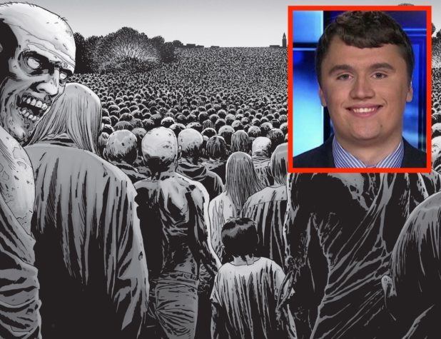 Adding a layer of bizarreness that takes the entire situation to “bad acid trip” levels, somehow Kirk has managed to attach these revolutionary Marxist, globalist ideas to Donald Trump – the man who won an election with promises to end immigration completely and round up tens of millions of people and throw them out!