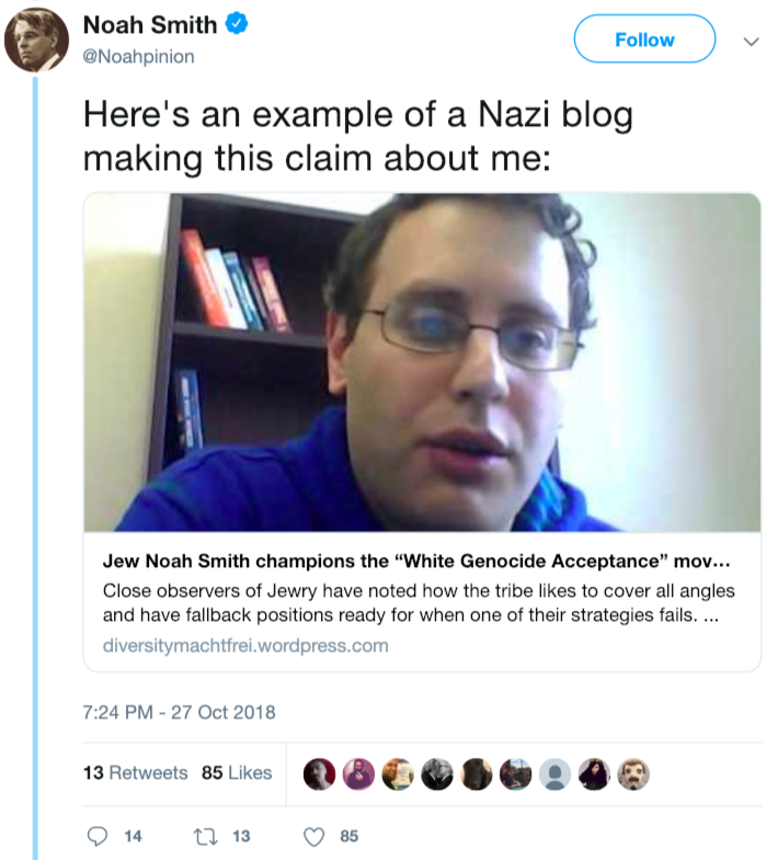 This is great news. Anyone impudent enough to think that ethnic Europeans have the right to go on existing must regularly suffer a barrage of insults from the Jews, including the ubiquitous “Nazi”. Here is but one example.