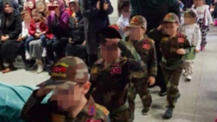 A mosque in Herford, Germany, has published photos and videos on its web page showing children parading in uniform carrying fake firearms as a giant Turkish flag is laid out on the floor in front of them. After an outraged public reaction from press and politicians, most of the photos and videos were removed.