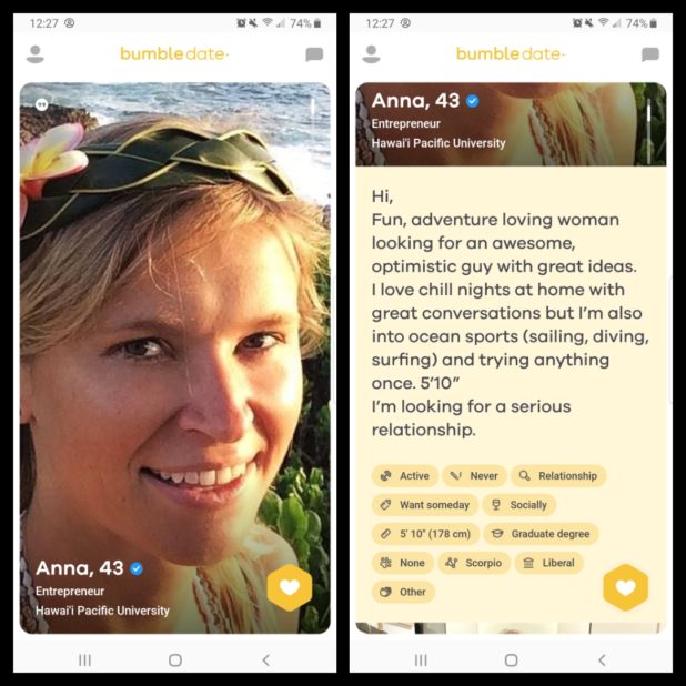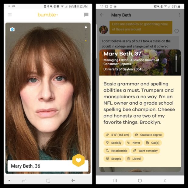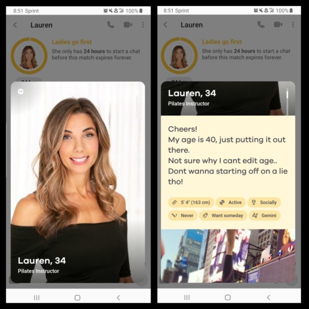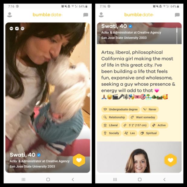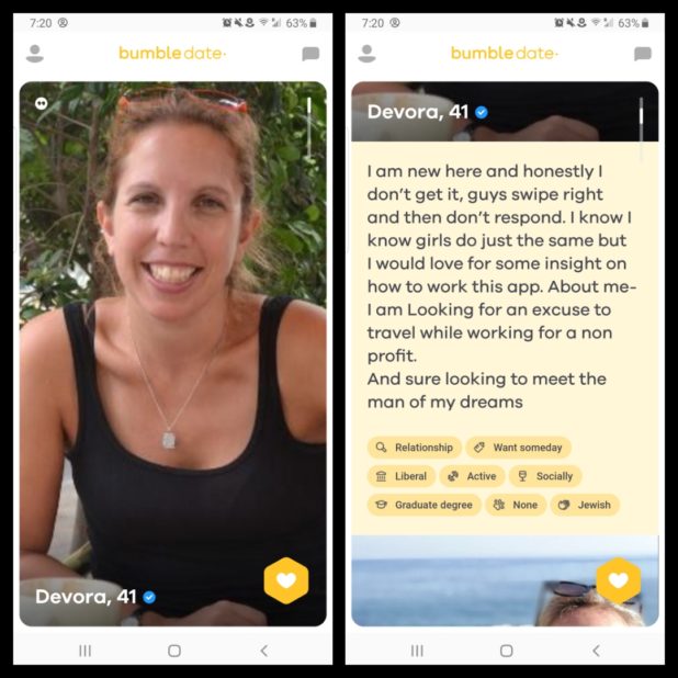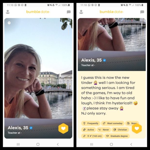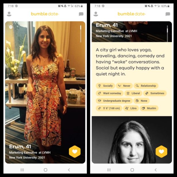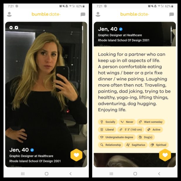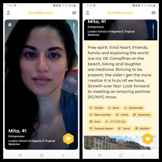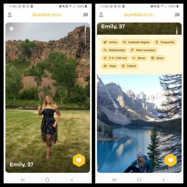 These images are from Bumble, a dating site.