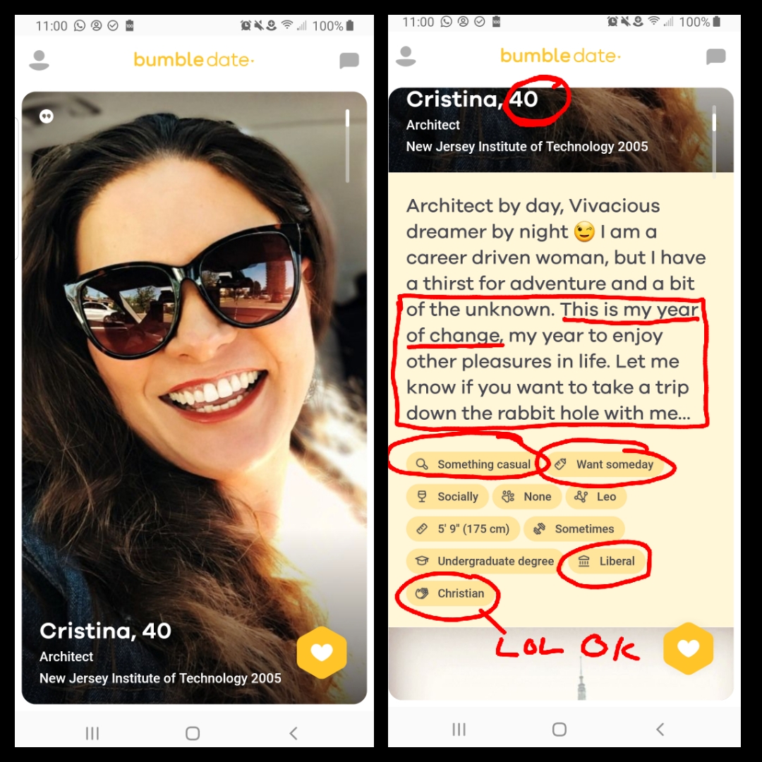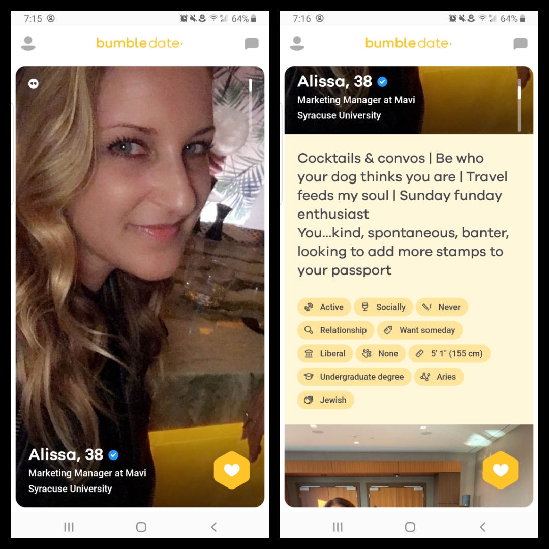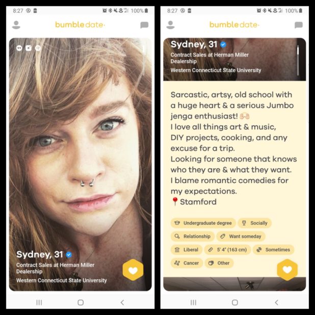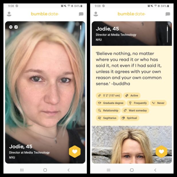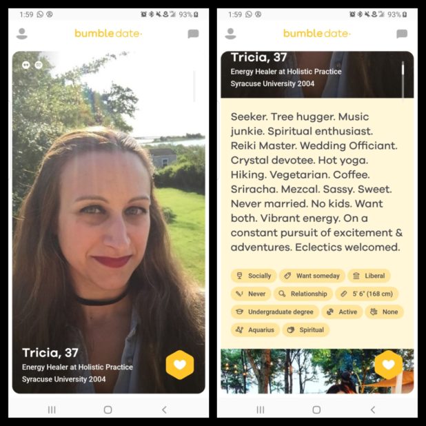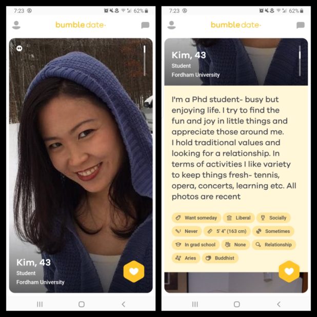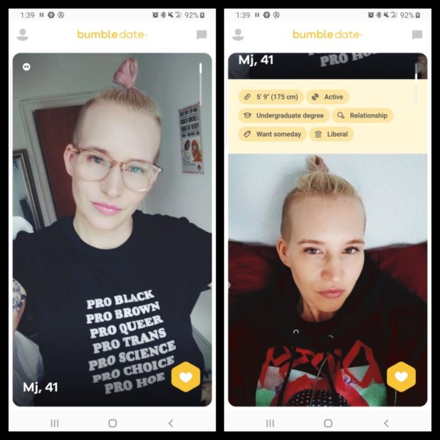 These images are from Bumble, a dating site.