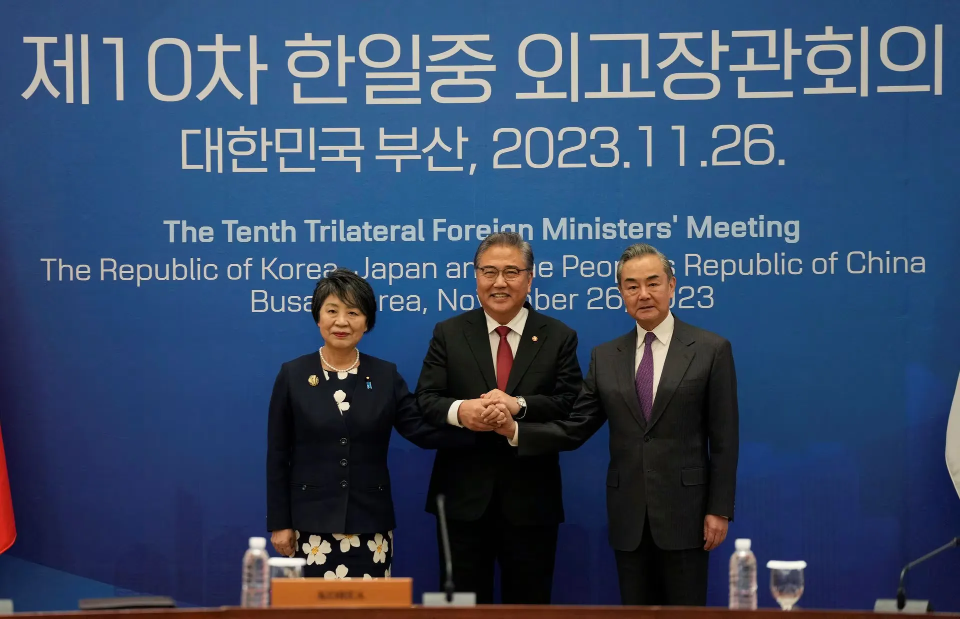 The three top diplomats met in the South Korean port of Busan for their first such meeting since 2019, after officials of the three countries agreed in September to arrange a trilateral summit at the “earliest convenient time”.