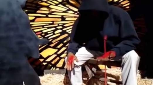 A Southern California church nativity scene is featuring a bloody Trayvon Martin in place of the infant Jesus in an effort to stir a community conversation about gun violence.