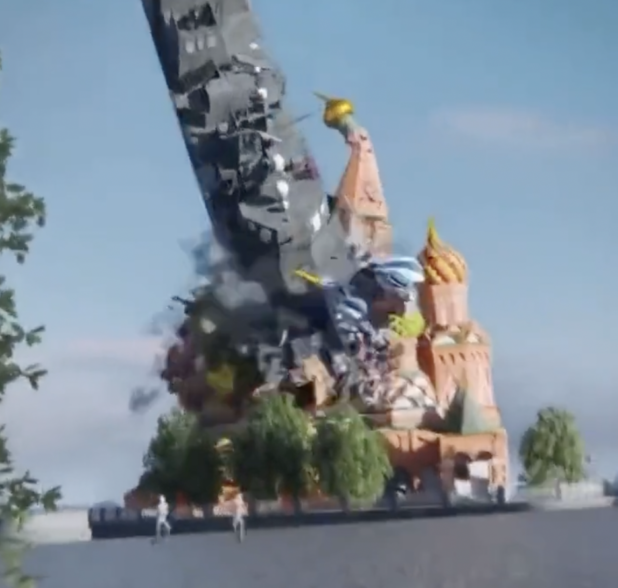 Very bizarrely, accounts have been sharing a video of Saint Basil’s Cathedral in Moscow being bombed. It’s very high quality CGI.