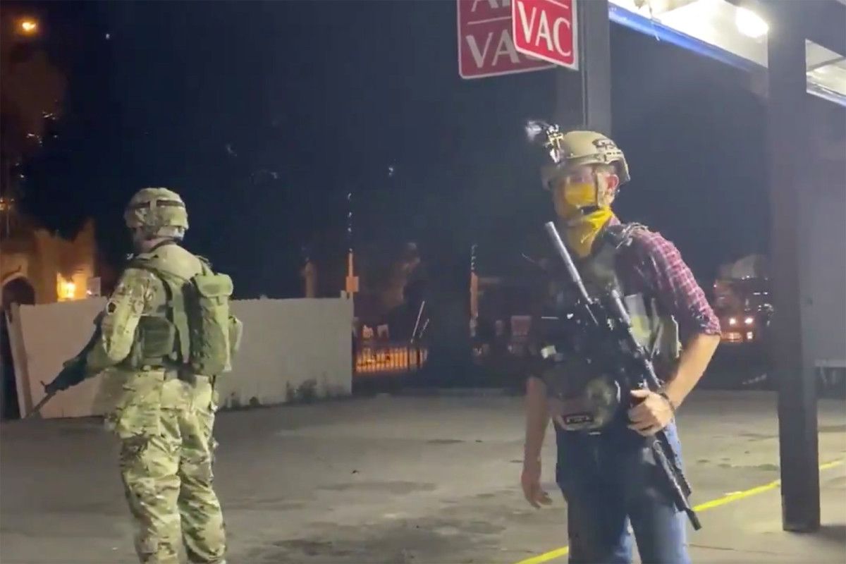 A group of guys in #Kenosha armed with guns are protecting a local business from rioters: